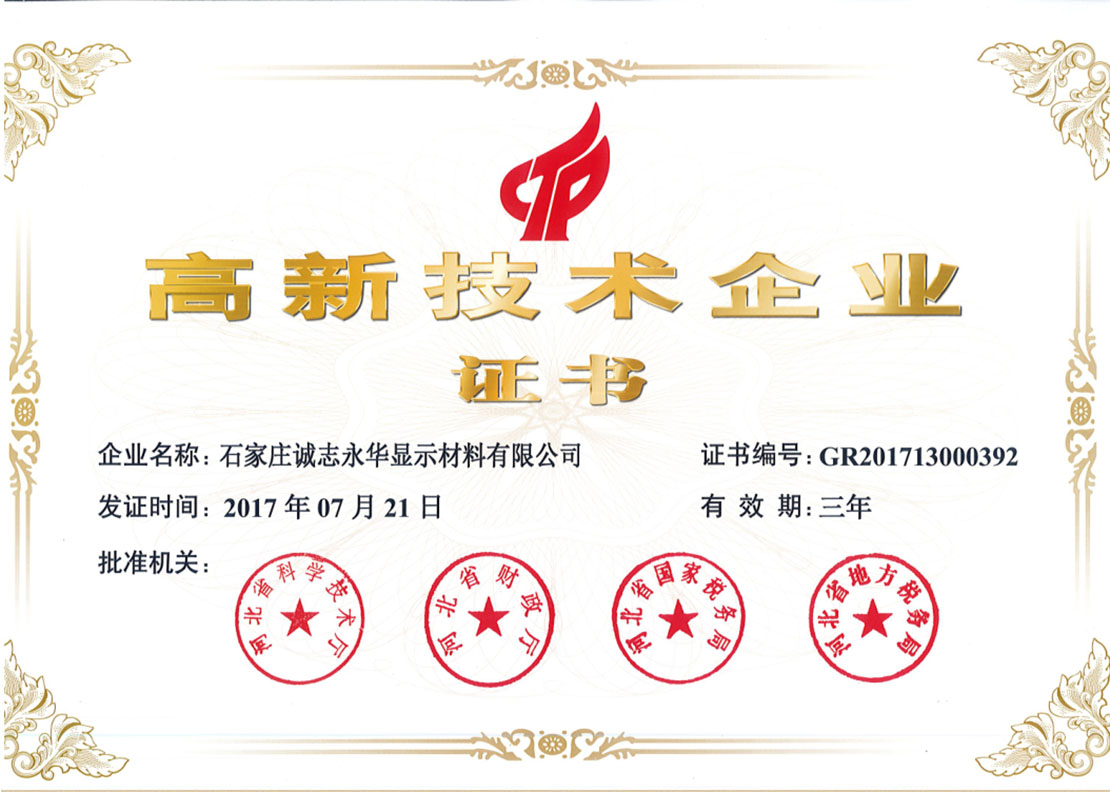2017 High tech Enterprise Certificate